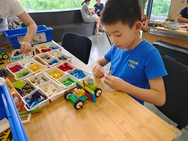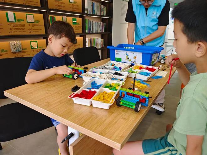 “怎么能固定住这个齿轮?”“老师,我有办法!”在徐老师的引导下,孩子们通过思考与实践用乐高积木搭建出充满创意的作品,并通过不断调整,完善车辆的结构与装饰。课程打破了传统模式,将环保知识与乐高搭建巧妙结合,把抽象的环保理念转化为具体的搭建实践,让科普变得更具趣味性和互动性,更好地推动科普工作深入开展。